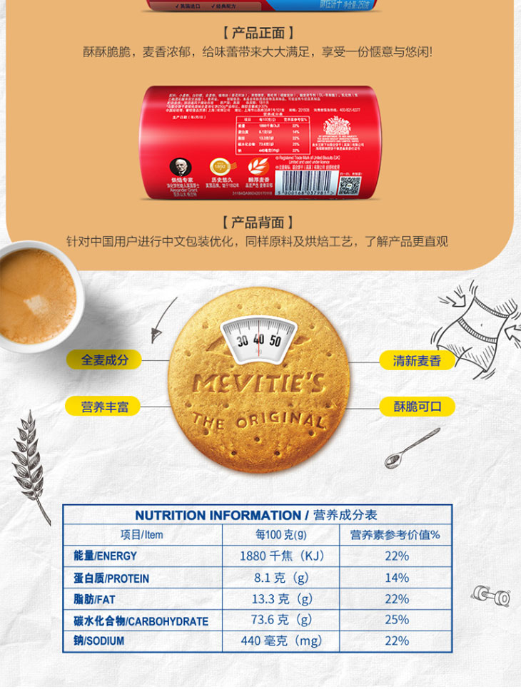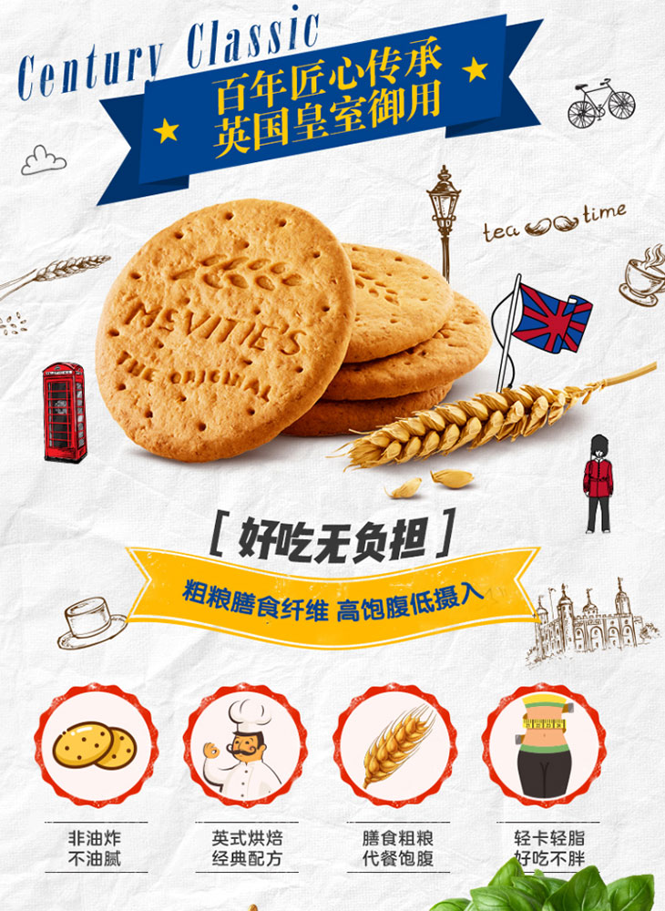 【包邮直发】麦维他 原味全麦轻怡消化饼250g*3 英国原装进口